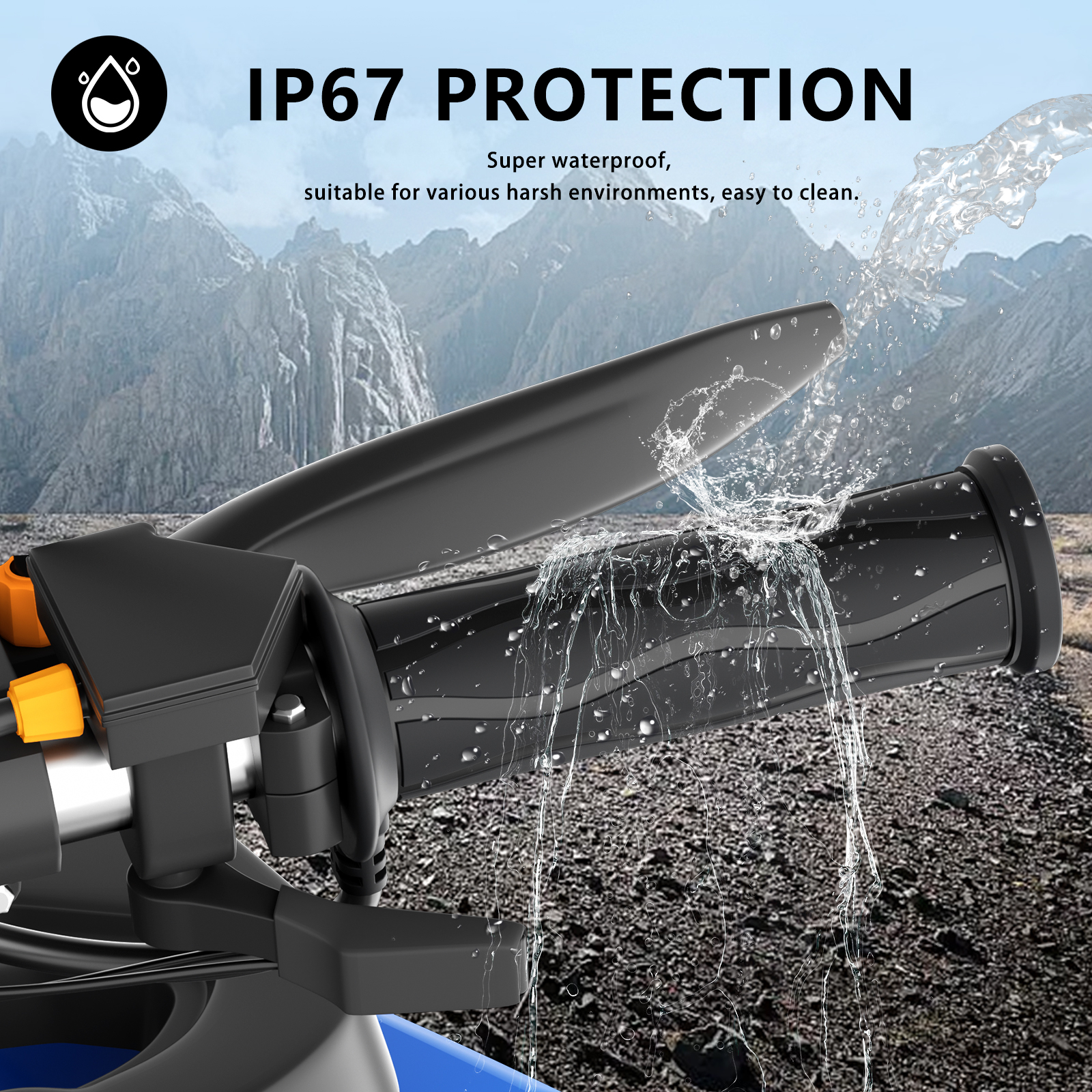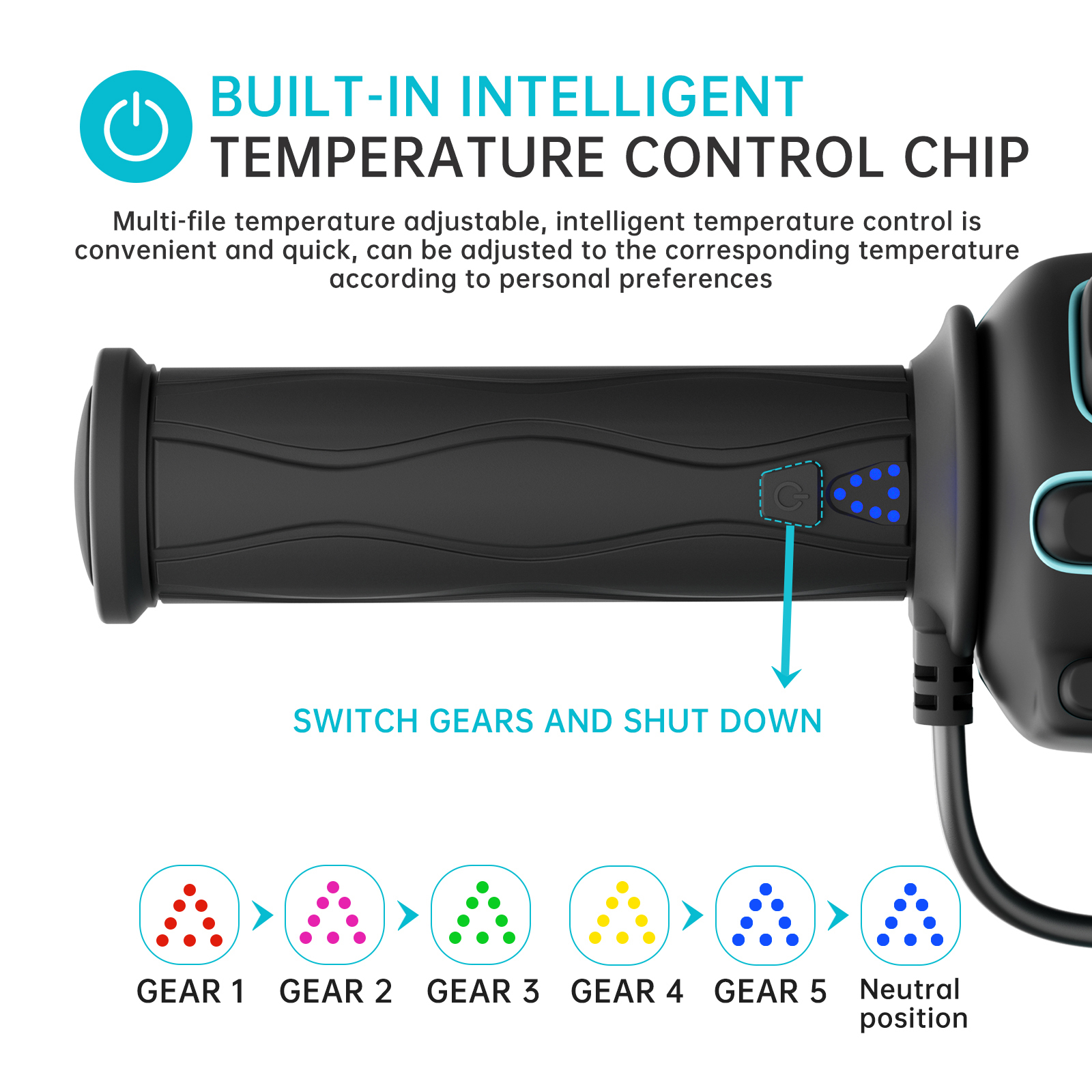 Manere incalzite ATV & bicicleta cu cip inteligent de control al temperaturii si 5 trepte reglabile. Comutare rapida a treptelor, oprire din buton, prindere ergonomica antiderapanta. Compatibile 12V, instalare usoara, ideale pentru vreme rece, ploaie sau drumuri off-road.