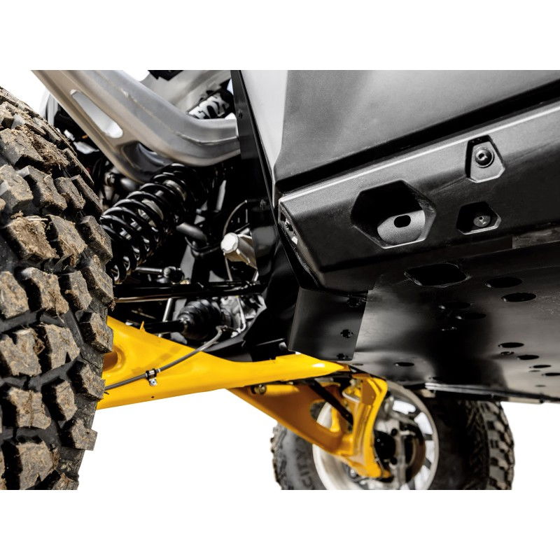 Does not reduce the Wheel-to-Vehicle clearance. The Protection is fitted tightly to the plastic fairing.